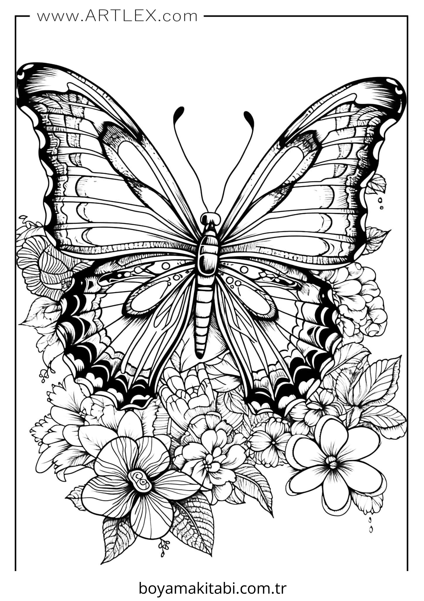 Kelebek temalı bu boyama sayfası çocuklar için el becerilerini geliştirir ve boyama çalışması bir etkinlik sunar. Ücretsiz olarak indirip yazdırabilir, evde keyifli bir boyama zamanı oluşturabilirsiniz.