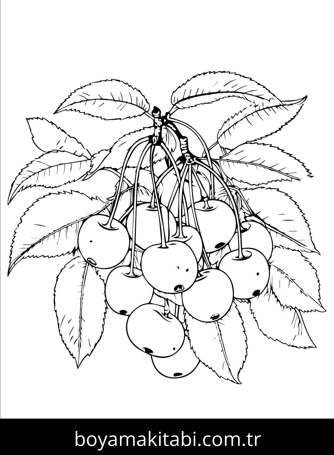 Kiraz temalı bu boyama sayfası çocuklar için sanatsal çalışma ve çocuklar için bir etkinlik sunar. Ücretsiz olarak indirip yazdırabilir, evde keyifli bir boyama zamanı oluşturabilirsiniz.