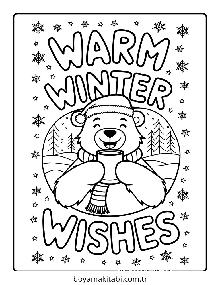 Kış temalı bu boyama sayfası çocuklar için ücretsiz yazdır ve boyama etkinliği bir etkinlik sunar. Ücretsiz olarak indirip yazdırabilir, evde keyifli bir boyama zamanı oluşturabilirsiniz.