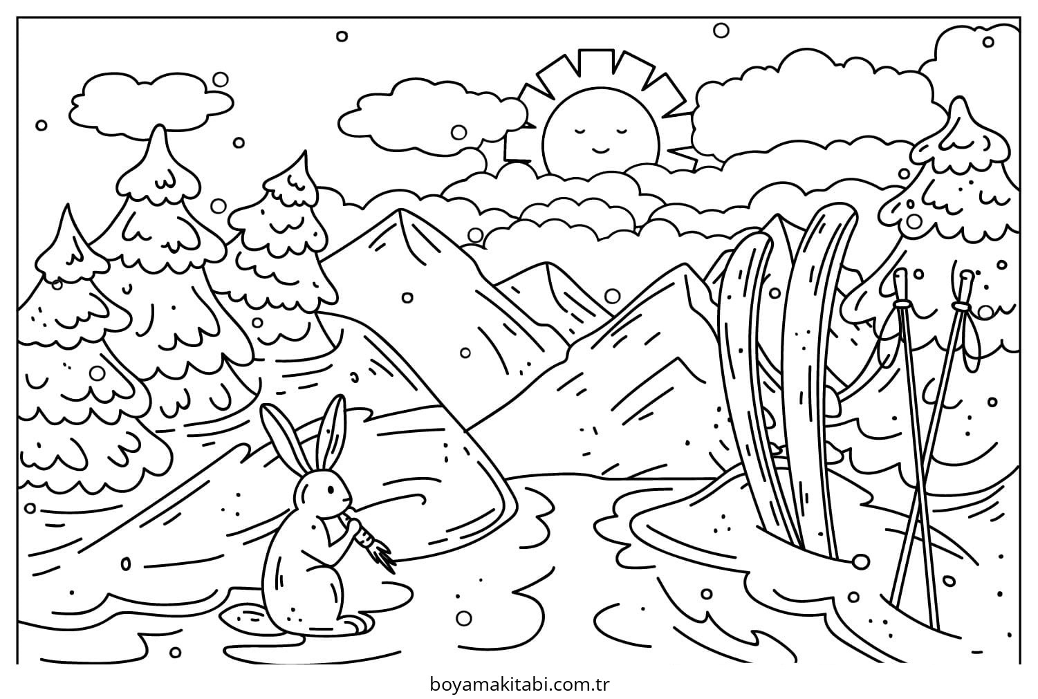 Kış temalı bu boyama sayfası çocuklar için kolay boyama ve eğitici aktivite bir etkinlik sunar. Ücretsiz olarak indirip yazdırabilir, evde keyifli bir boyama zamanı oluşturabilirsiniz.