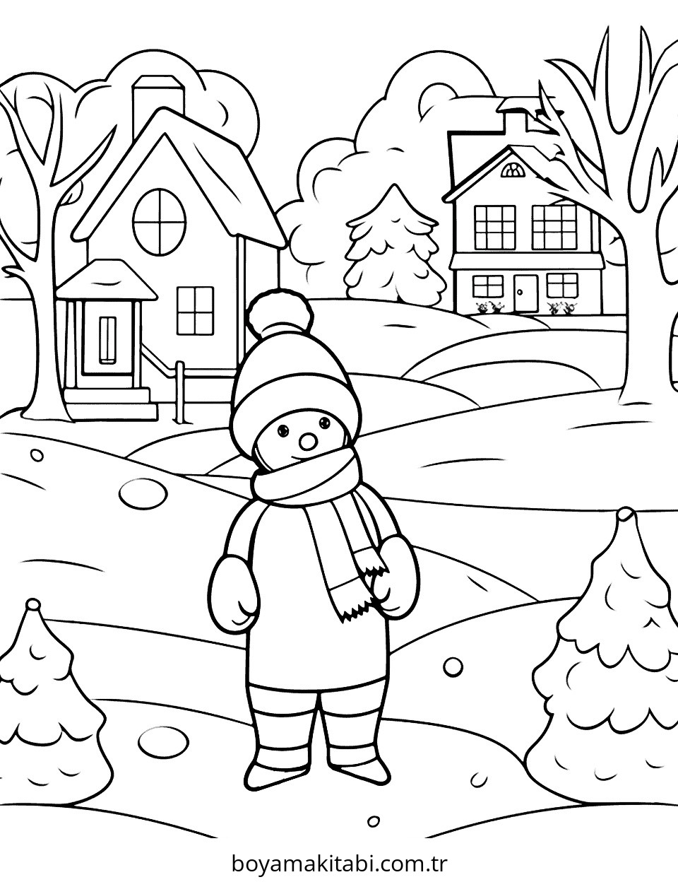 Kış temalı bu boyama sayfası çocuklar için yaratıcılığı geliştirir ve keyifli zaman bir etkinlik sunar. Ücretsiz olarak indirip yazdırabilir, evde keyifli bir boyama zamanı oluşturabilirsiniz.