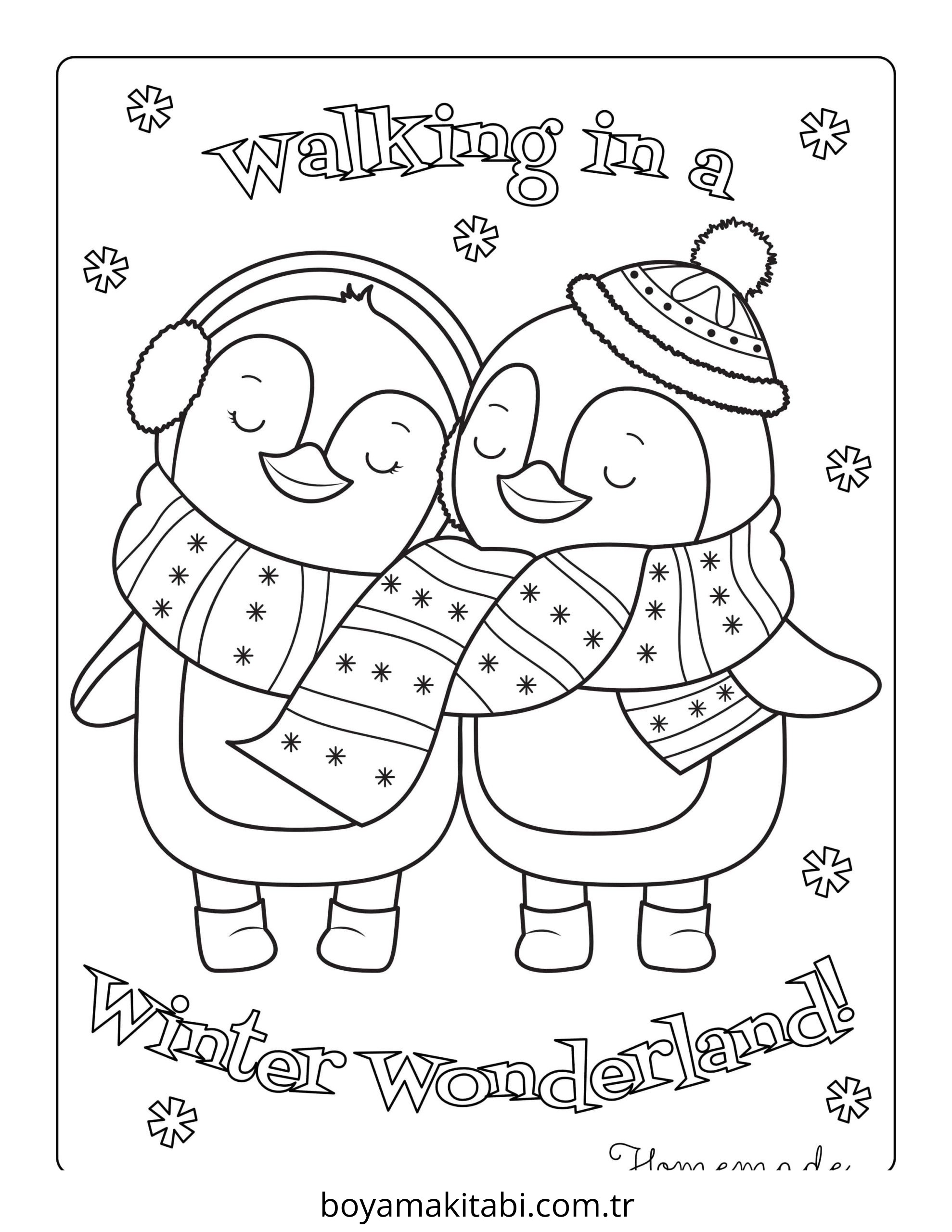 Kış temalı bu boyama sayfası çocuklar için el becerilerini geliştirir ve boyama çalışması bir etkinlik sunar. Ücretsiz olarak indirip yazdırabilir, evde keyifli bir boyama zamanı oluşturabilirsiniz.