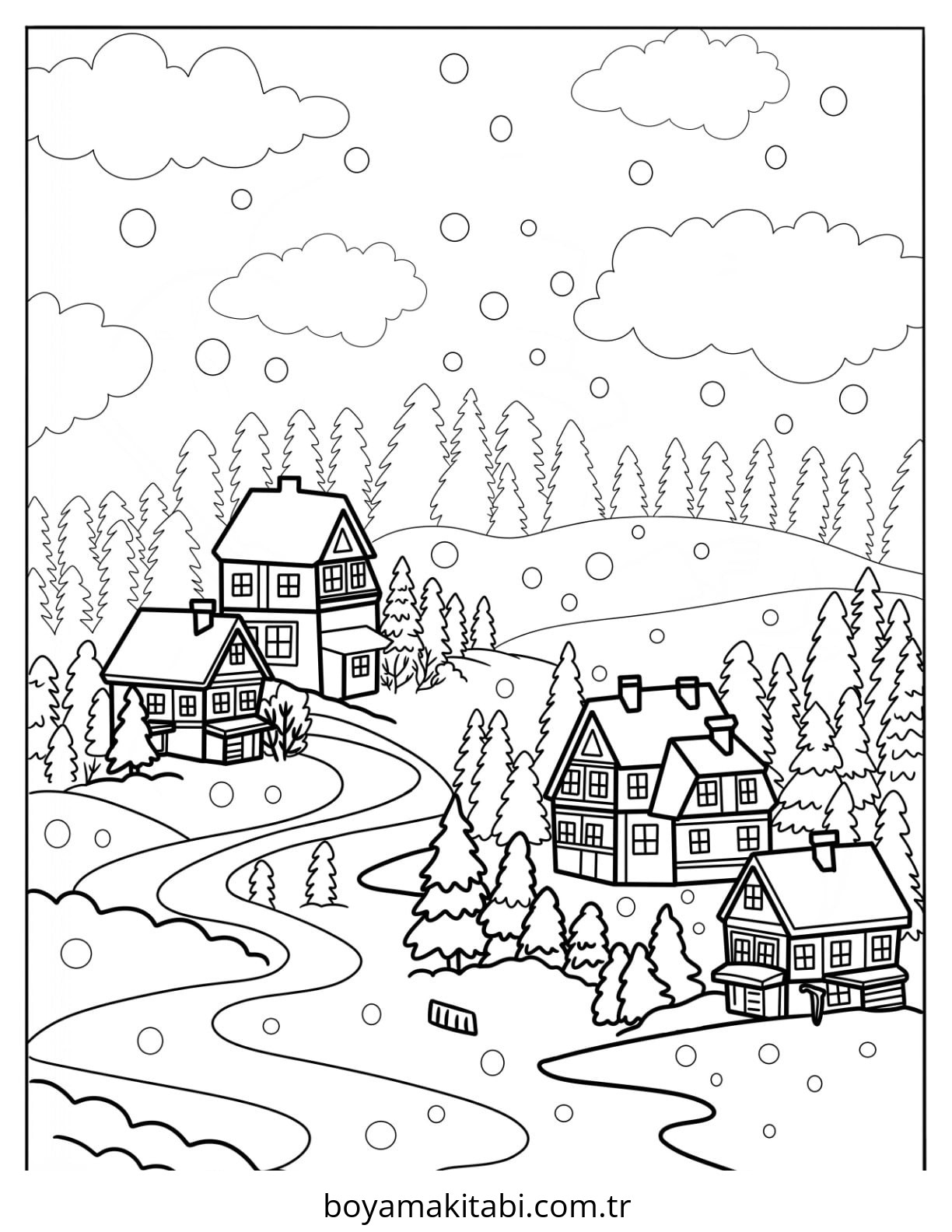 Kış temalı bu boyama sayfası çocuklar için ücretsiz yazdır ve boyama etkinliği bir etkinlik sunar. Ücretsiz olarak indirip yazdırabilir, evde keyifli bir boyama zamanı oluşturabilirsiniz.