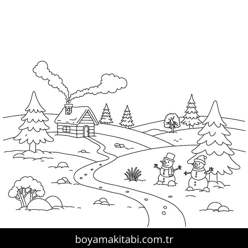 Kış Mevsimi boyama sayfası – PDF indir, sevimli karakter
