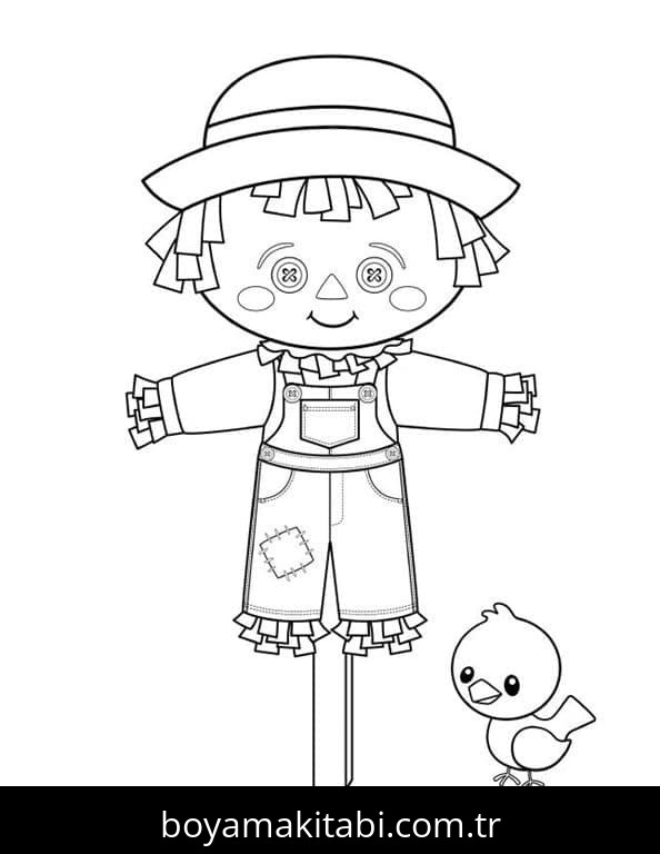 Korkuluk temalı bu boyama sayfası çocuklar için renkli çizimler ve okul öncesi bir etkinlik sunar. Ücretsiz olarak indirip yazdırabilir, evde keyifli bir boyama zamanı oluşturabilirsiniz.