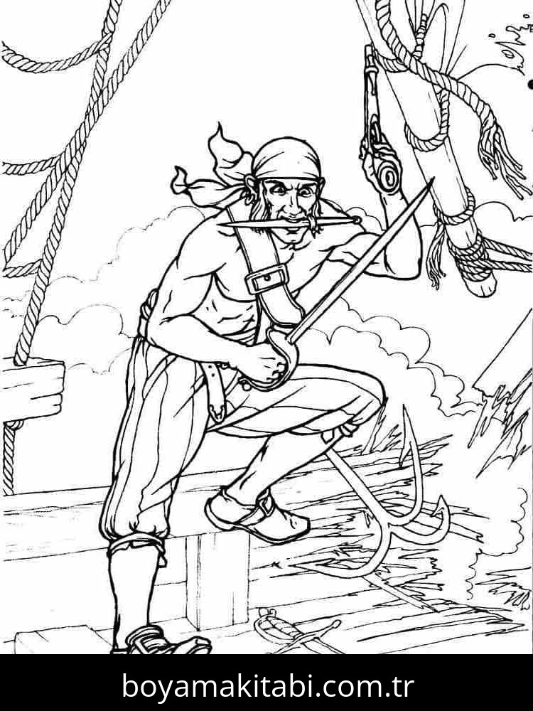 Korsan temalı bu boyama sayfası çocuklar için el becerilerini geliştirir ve boyama çalışması bir etkinlik sunar. Ücretsiz olarak indirip yazdırabilir, evde keyifli bir boyama zamanı oluşturabilirsiniz.