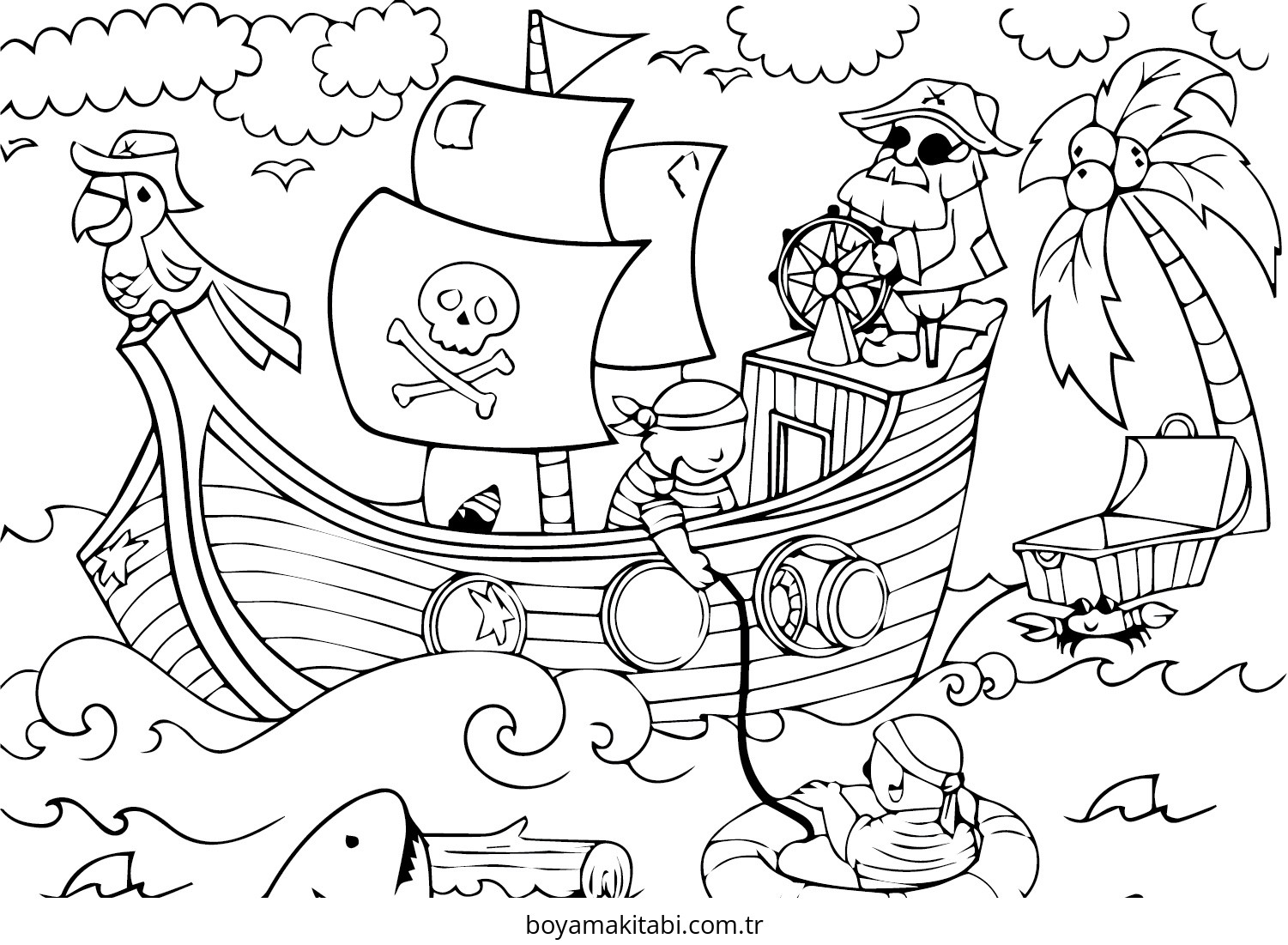 Korsan temalı bu boyama sayfası çocuklar için keyifli zaman ve renkli çizimler bir etkinlik sunar. Ücretsiz olarak indirip yazdırabilir, evde keyifli bir boyama zamanı oluşturabilirsiniz.