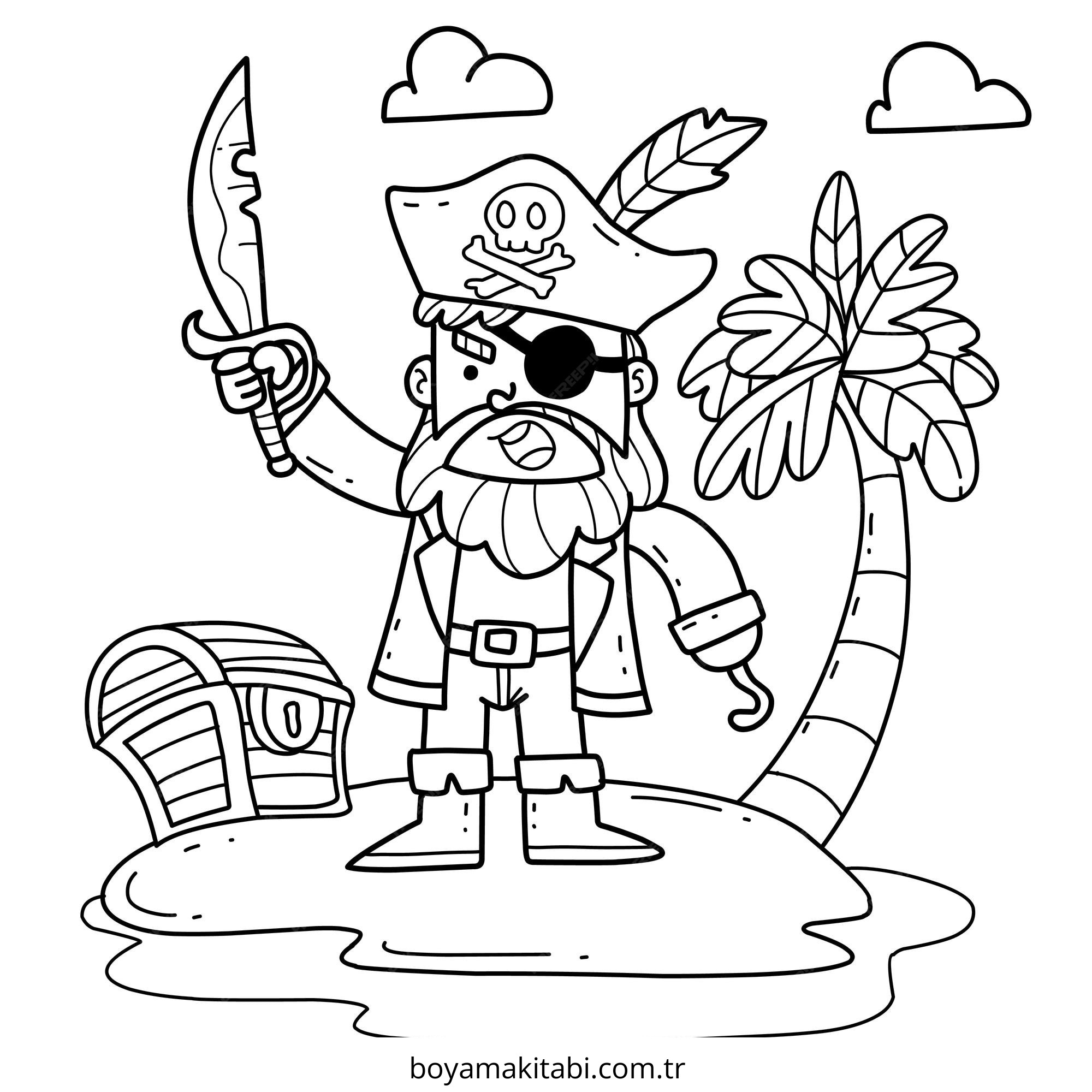 Korsan temalı bu boyama sayfası çocuklar için çocuklar için ve çizgi film temalı bir etkinlik sunar. Ücretsiz olarak indirip yazdırabilir, evde keyifli bir boyama zamanı oluşturabilirsiniz.