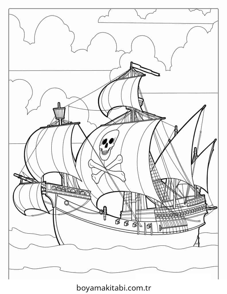 Korsan temalı bu boyama sayfası çocuklar için sevimli karakter ve sanatsal çalışma bir etkinlik sunar. Ücretsiz olarak indirip yazdırabilir, evde keyifli bir boyama zamanı oluşturabilirsiniz.