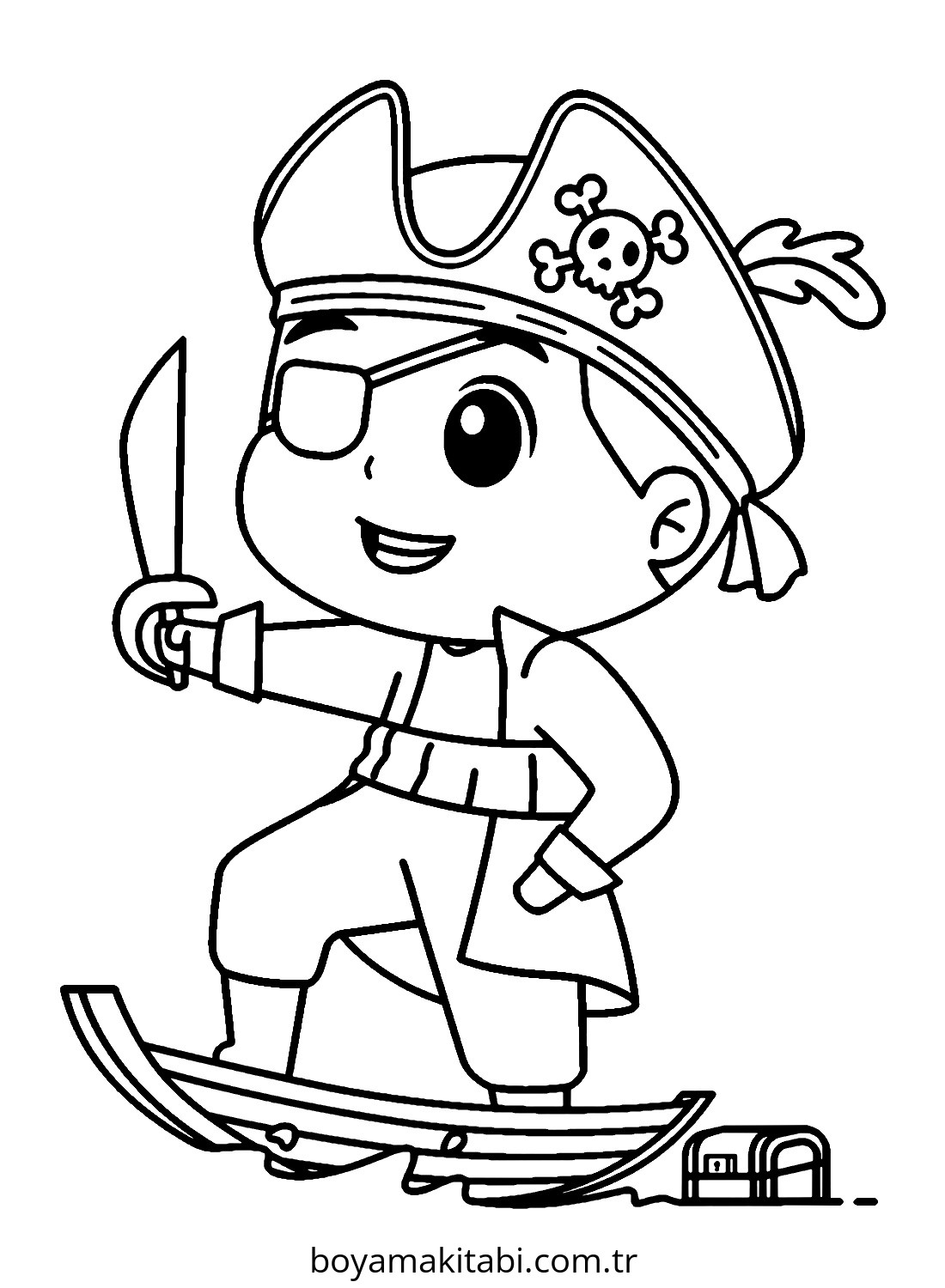 Korsan temalı bu boyama sayfası çocuklar için basit çizim ve kolay boyama bir etkinlik sunar. Ücretsiz olarak indirip yazdırabilir, evde keyifli bir boyama zamanı oluşturabilirsiniz.