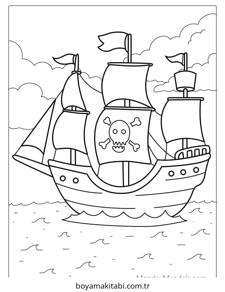Korsan temalı bu boyama sayfası çocuklar için çocuklar için ve çizgi film temalı bir etkinlik sunar. Ücretsiz olarak indirip yazdırabilir, evde keyifli bir boyama zamanı oluşturabilirsiniz.