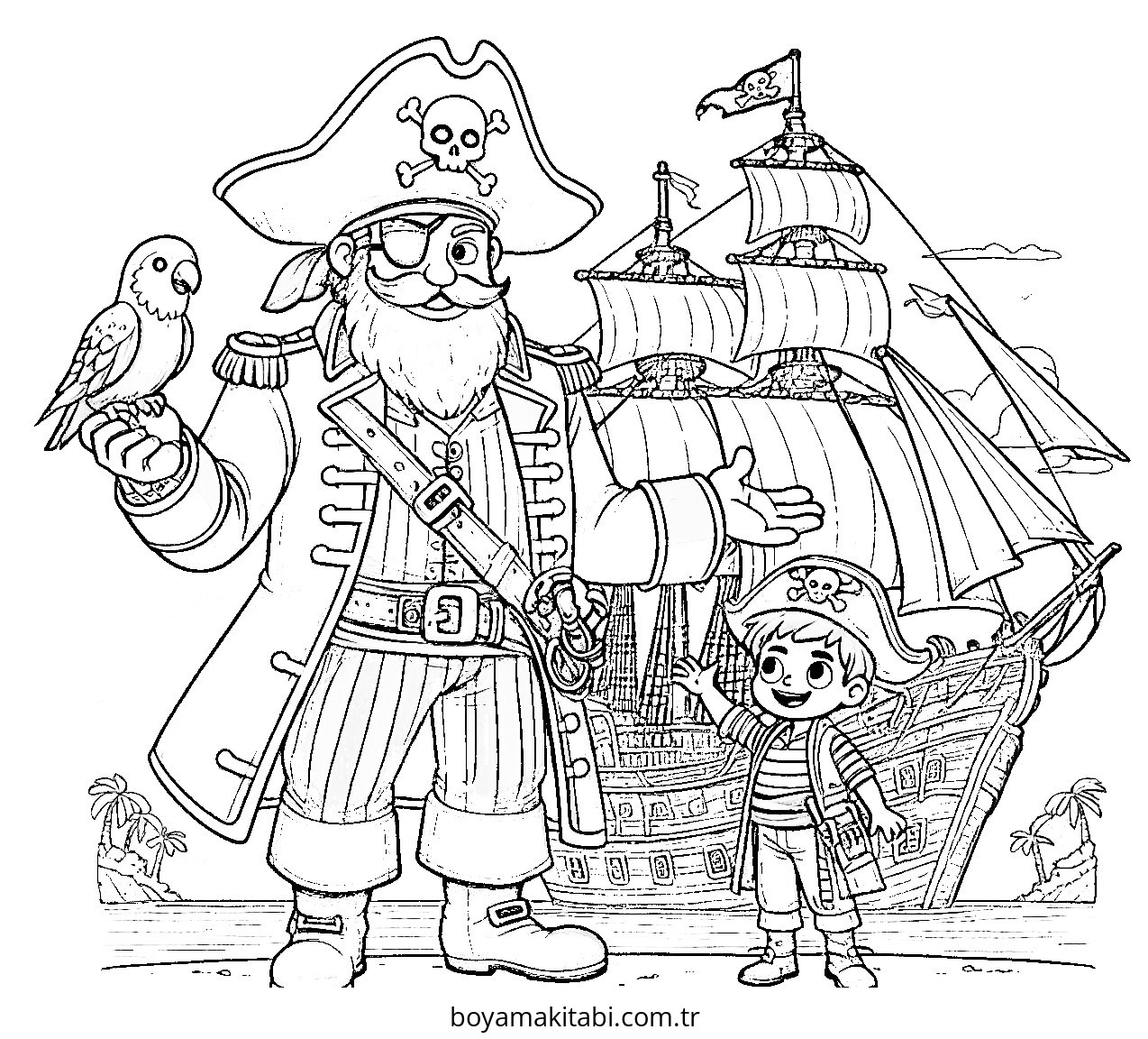 Korsan temalı bu boyama sayfası çocuklar için okul öncesi ve evde etkinlik bir etkinlik sunar. Ücretsiz olarak indirip yazdırabilir, evde keyifli bir boyama zamanı oluşturabilirsiniz.