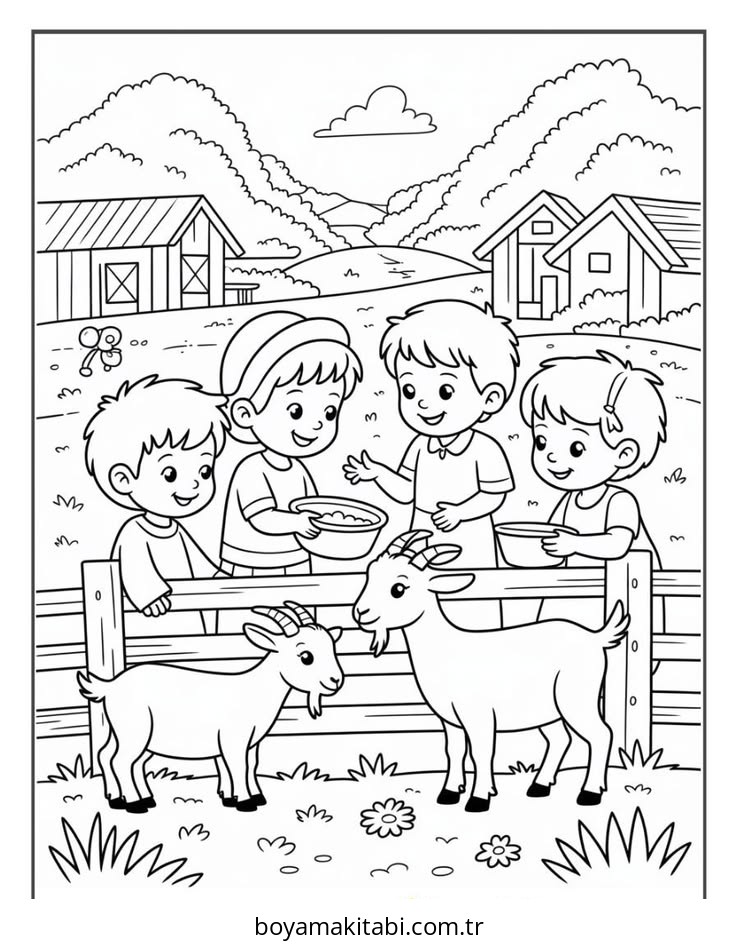 Köy temalı bu boyama sayfası çocuklar için okul öncesi ve evde etkinlik bir etkinlik sunar. Ücretsiz olarak indirip yazdırabilir, evde keyifli bir boyama zamanı oluşturabilirsiniz.