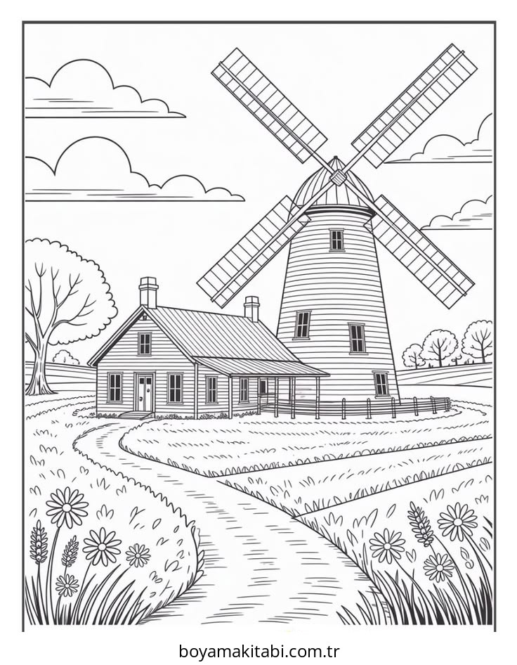 Köy temalı bu boyama sayfası çocuklar için çocuk aktivitesi ve PDF indir bir etkinlik sunar. Ücretsiz olarak indirip yazdırabilir, evde keyifli bir boyama zamanı oluşturabilirsiniz.