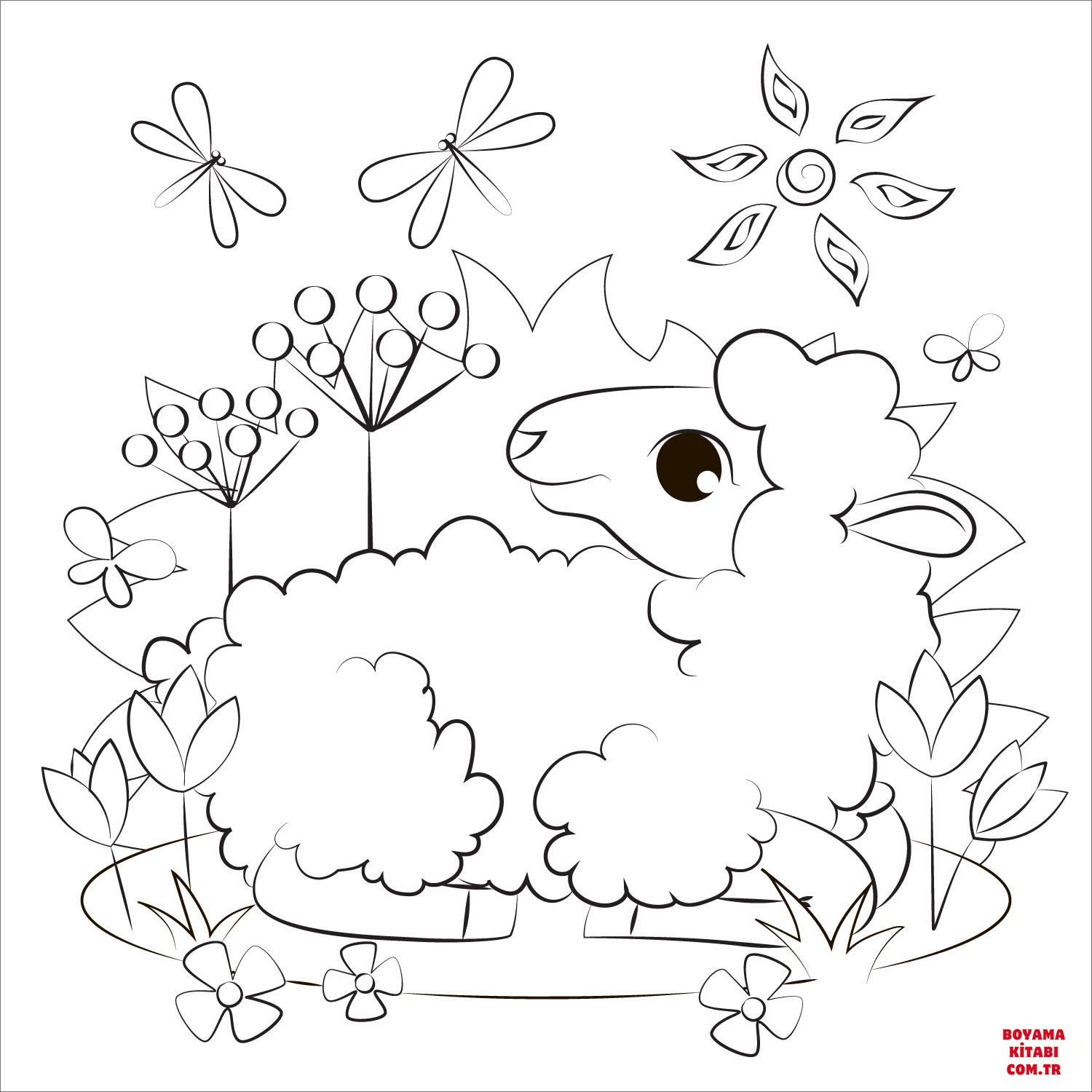 Koyun Boyama Sayfaları ve Eğlenceli Etkinlikler. Koyun Eğlenceli Boyama Sayfaları, Koyun boyama sayfası, Sheep coloring page, komik, mutlu, kolay