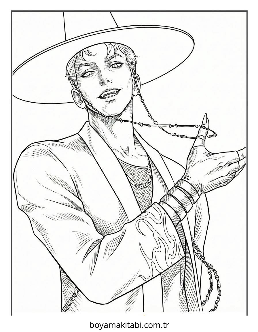 KPop Demon Hunters (96).jpg temalı bu boyama sayfası çocuklar için PDF indir ve sevimli karakter bir etkinlik sunar. Ücretsiz olarak indirip yazdırabilir, evde keyifli bir boyama zamanı oluşturabilirsiniz.