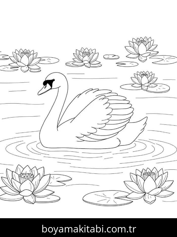Kuğu temalı bu boyama sayfası çocuklar için renkli çizimler ve okul öncesi bir etkinlik sunar. Ücretsiz olarak indirip yazdırabilir, evde keyifli bir boyama zamanı oluşturabilirsiniz.