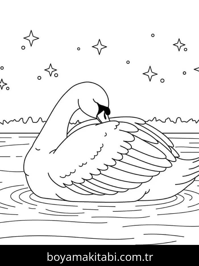 Kuğu temalı bu boyama sayfası çocuklar için sanatsal çalışma ve çocuklar için bir etkinlik sunar. Ücretsiz olarak indirip yazdırabilir, evde keyifli bir boyama zamanı oluşturabilirsiniz.