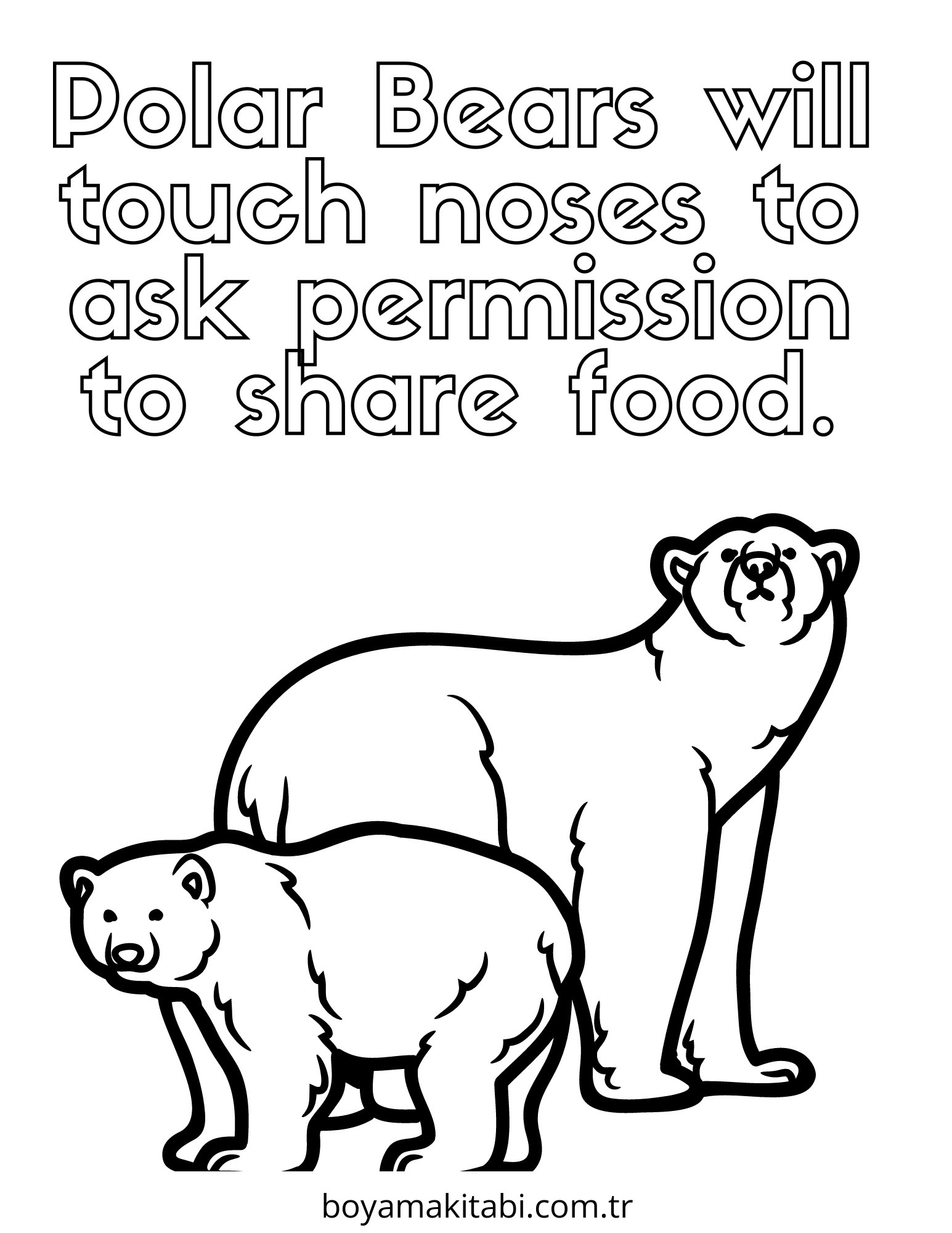 Kutup ayısı temalı bu boyama sayfası çocuklar için boyama etkinliği ve çocuk aktivitesi bir etkinlik sunar. Ücretsiz olarak indirip yazdırabilir, evde keyifli bir boyama zamanı oluşturabilirsiniz.