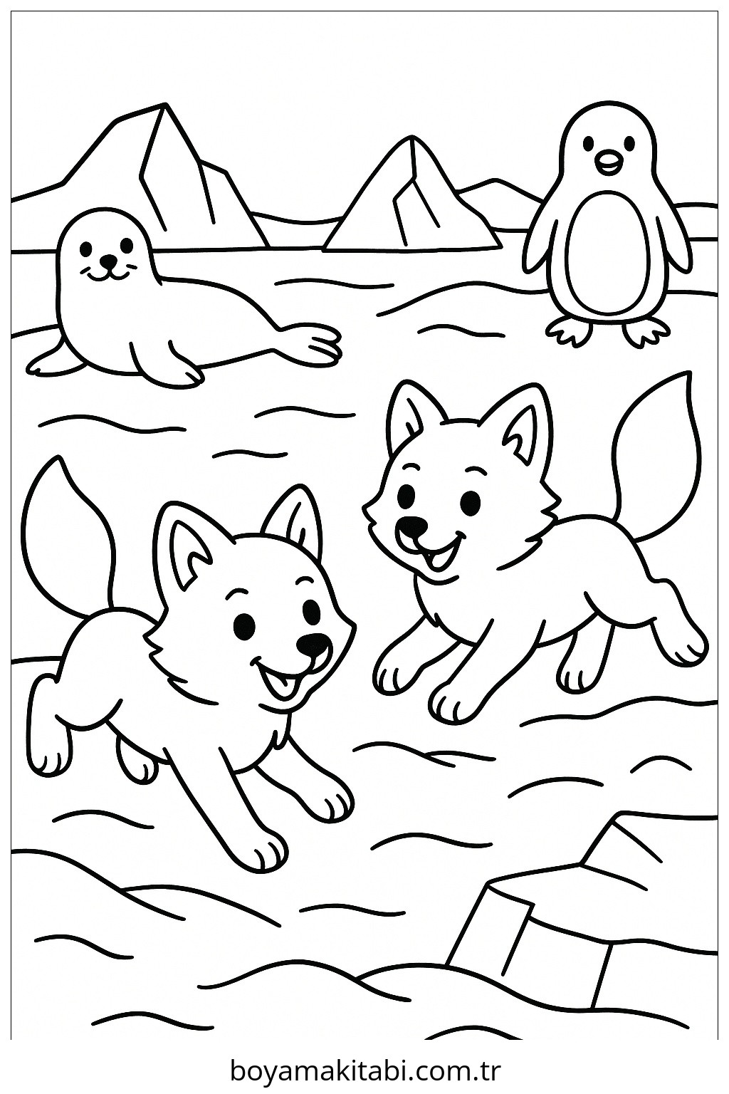 Kutup Hayvanları temalı bu boyama sayfası çocuklar için kolay boyama ve eğitici aktivite bir etkinlik sunar. Ücretsiz olarak indirip yazdırabilir, evde keyifli bir boyama zamanı oluşturabilirsiniz.