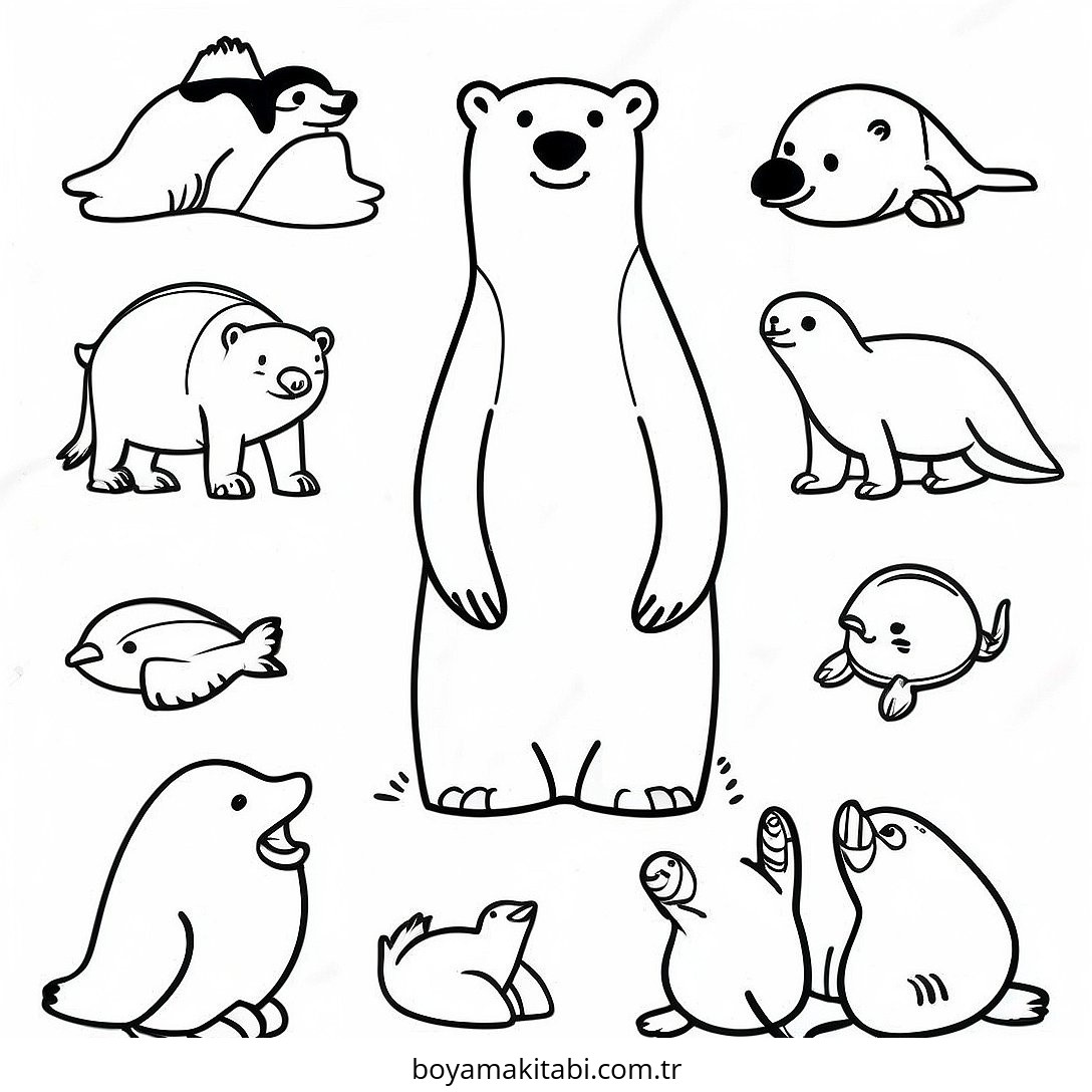 Kutup Hayvanları temalı bu boyama sayfası çocuklar için boyama etkinliği ve çocuk aktivitesi bir etkinlik sunar. Ücretsiz olarak indirip yazdırabilir, evde keyifli bir boyama zamanı oluşturabilirsiniz.