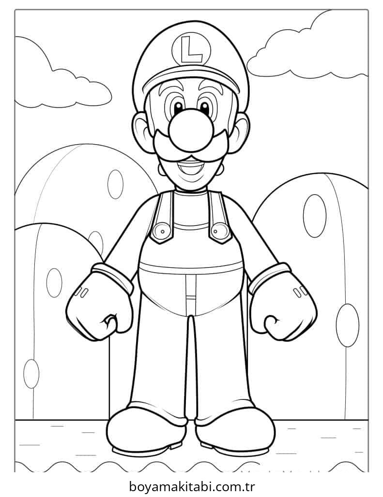 Luigi temalı bu boyama sayfası çocuklar için el becerilerini geliştirir ve boyama çalışması bir etkinlik sunar. Ücretsiz olarak indirip yazdırabilir, evde keyifli bir boyama zamanı oluşturabilirsiniz.