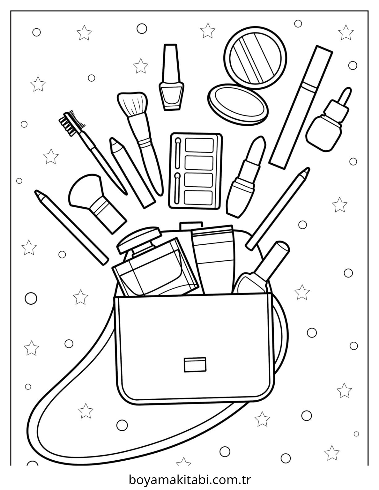 Makyaj temalı bu boyama sayfası çocuklar için boyama çalışması ve yaratıcılığı geliştirir bir etkinlik sunar. Ücretsiz olarak indirip yazdırabilir, evde keyifli bir boyama zamanı oluşturabilirsiniz.