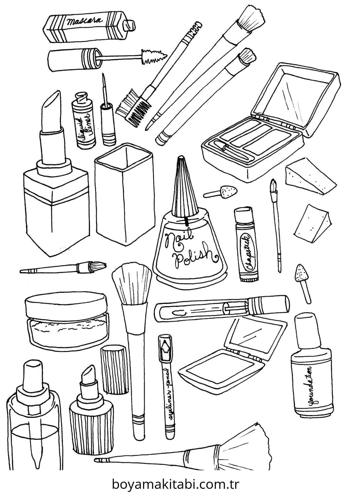 Makyaj temalı bu boyama sayfası çocuklar için sanatsal çalışma ve çocuklar için bir etkinlik sunar. Ücretsiz olarak indirip yazdırabilir, evde keyifli bir boyama zamanı oluşturabilirsiniz.