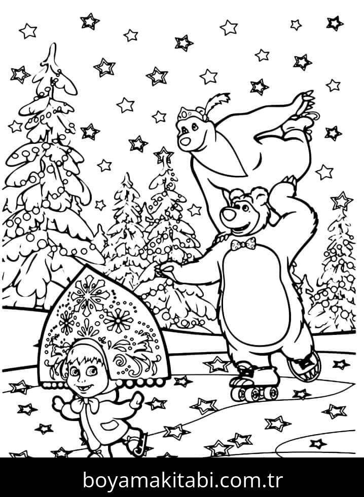 Maşa ile Koca Ayı Boyama Sayfası