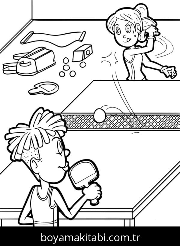 Masa Tenisi temalı bu boyama sayfası çocuklar için sanatsal çalışma ve çocuklar için bir etkinlik sunar. Ücretsiz olarak indirip yazdırabilir, evde keyifli bir boyama zamanı oluşturabilirsiniz.