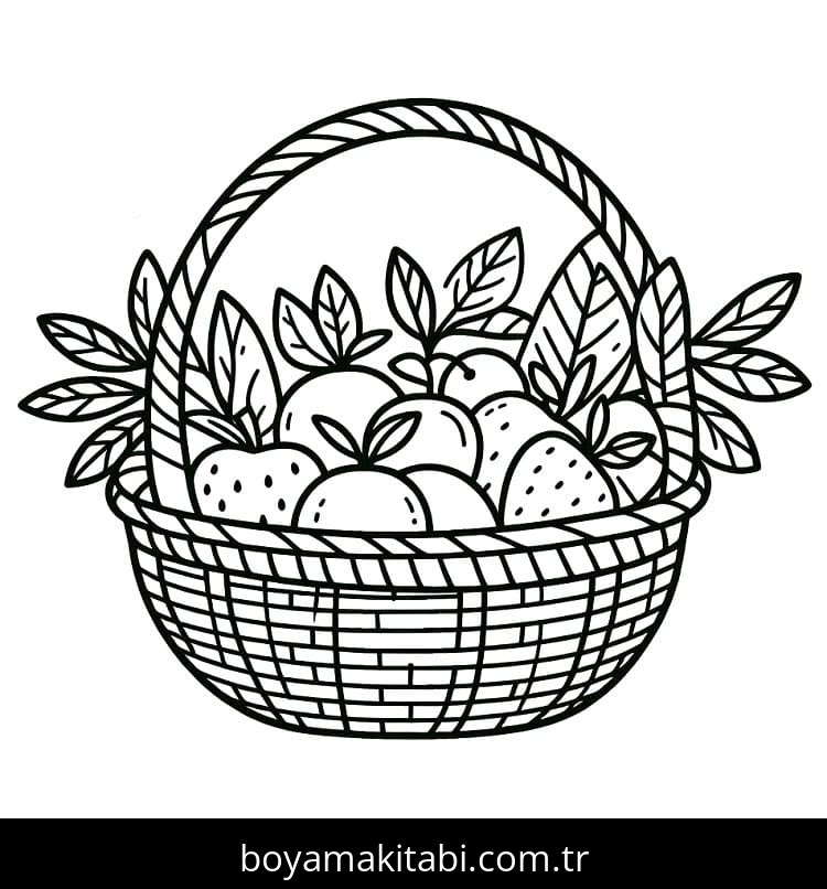 Meyve Sepeti temalı bu boyama sayfası çocuklar için boyama çalışması ve yaratıcılığı geliştirir bir etkinlik sunar. Ücretsiz olarak indirip yazdırabilir, evde keyifli bir boyama zamanı oluşturabilirsiniz.