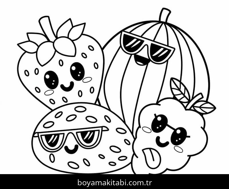 Meyveler temalı bu boyama sayfası çocuklar için çizgi film temalı ve basit çizim bir etkinlik sunar. Ücretsiz olarak indirip yazdırabilir, evde keyifli bir boyama zamanı oluşturabilirsiniz.