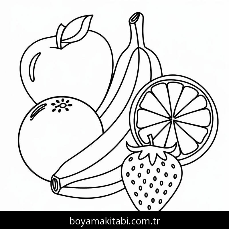Meyveler temalı bu boyama sayfası çocuklar için basit çizim ve kolay boyama bir etkinlik sunar. Ücretsiz olarak indirip yazdırabilir, evde keyifli bir boyama zamanı oluşturabilirsiniz.