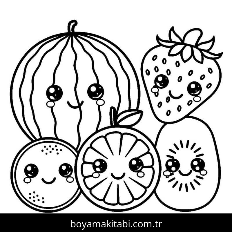 Meyveler temalı bu boyama sayfası çocuklar için renkli çizimler ve okul öncesi bir etkinlik sunar. Ücretsiz olarak indirip yazdırabilir, evde keyifli bir boyama zamanı oluşturabilirsiniz.