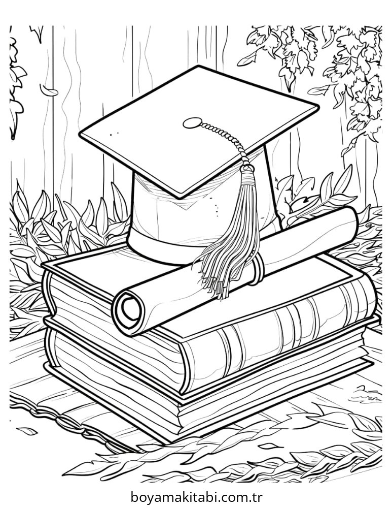 Mezuniyet temalı bu boyama sayfası çocuklar için okul öncesi ve evde etkinlik bir etkinlik sunar. Ücretsiz olarak indirip yazdırabilir, evde keyifli bir boyama zamanı oluşturabilirsiniz.