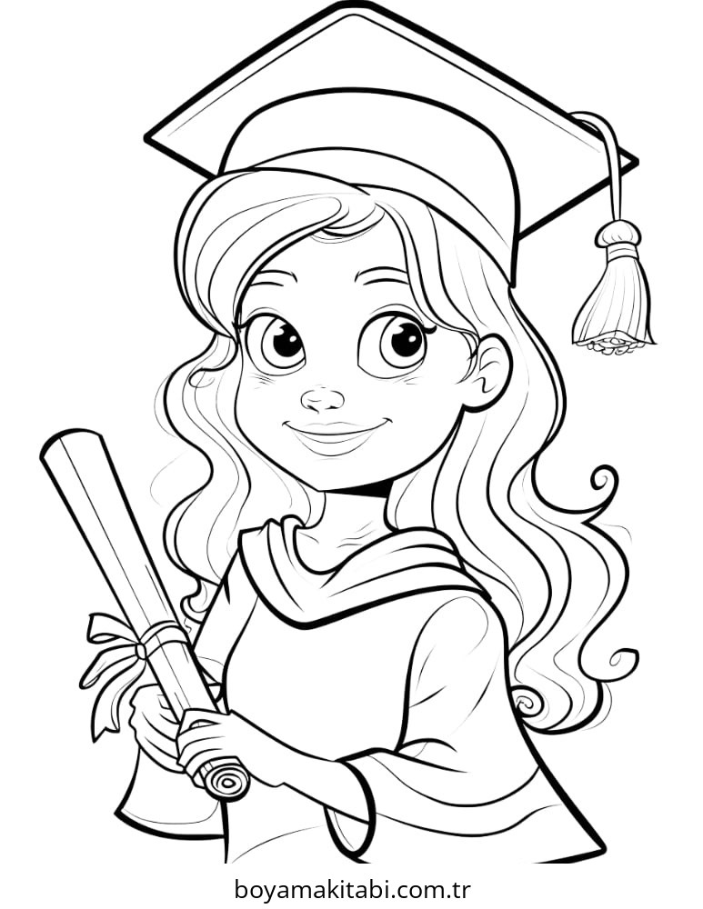 Mezuniyet temalı bu boyama sayfası çocuklar için sevimli karakter ve sanatsal çalışma bir etkinlik sunar. Ücretsiz olarak indirip yazdırabilir, evde keyifli bir boyama zamanı oluşturabilirsiniz.