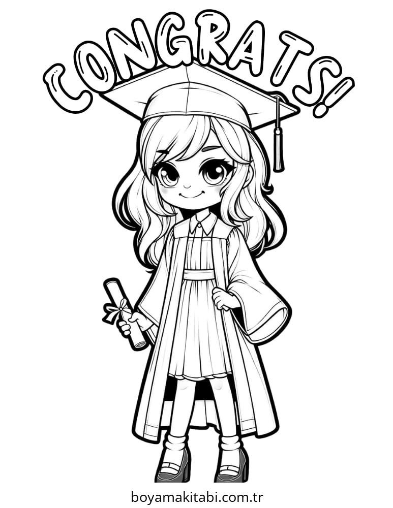 Mezuniyet temalı bu boyama sayfası çocuklar için çocuk aktivitesi ve PDF indir bir etkinlik sunar. Ücretsiz olarak indirip yazdırabilir, evde keyifli bir boyama zamanı oluşturabilirsiniz.
