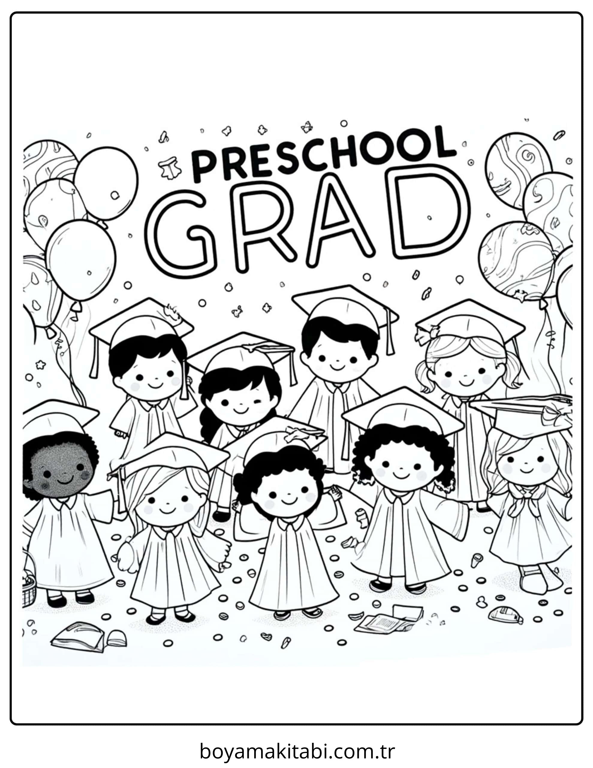 Mezuniyet temalı bu boyama sayfası çocuklar için sanatsal çalışma ve çocuklar için bir etkinlik sunar. Ücretsiz olarak indirip yazdırabilir, evde keyifli bir boyama zamanı oluşturabilirsiniz.