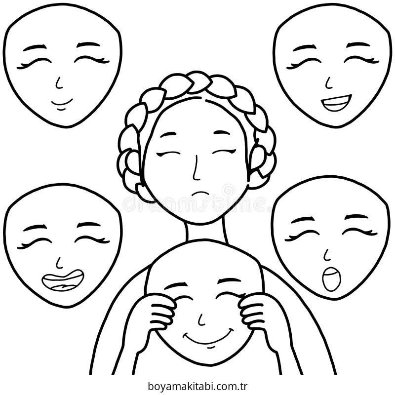 Mutlu Üzgün Kızgın Boyama Sayfası