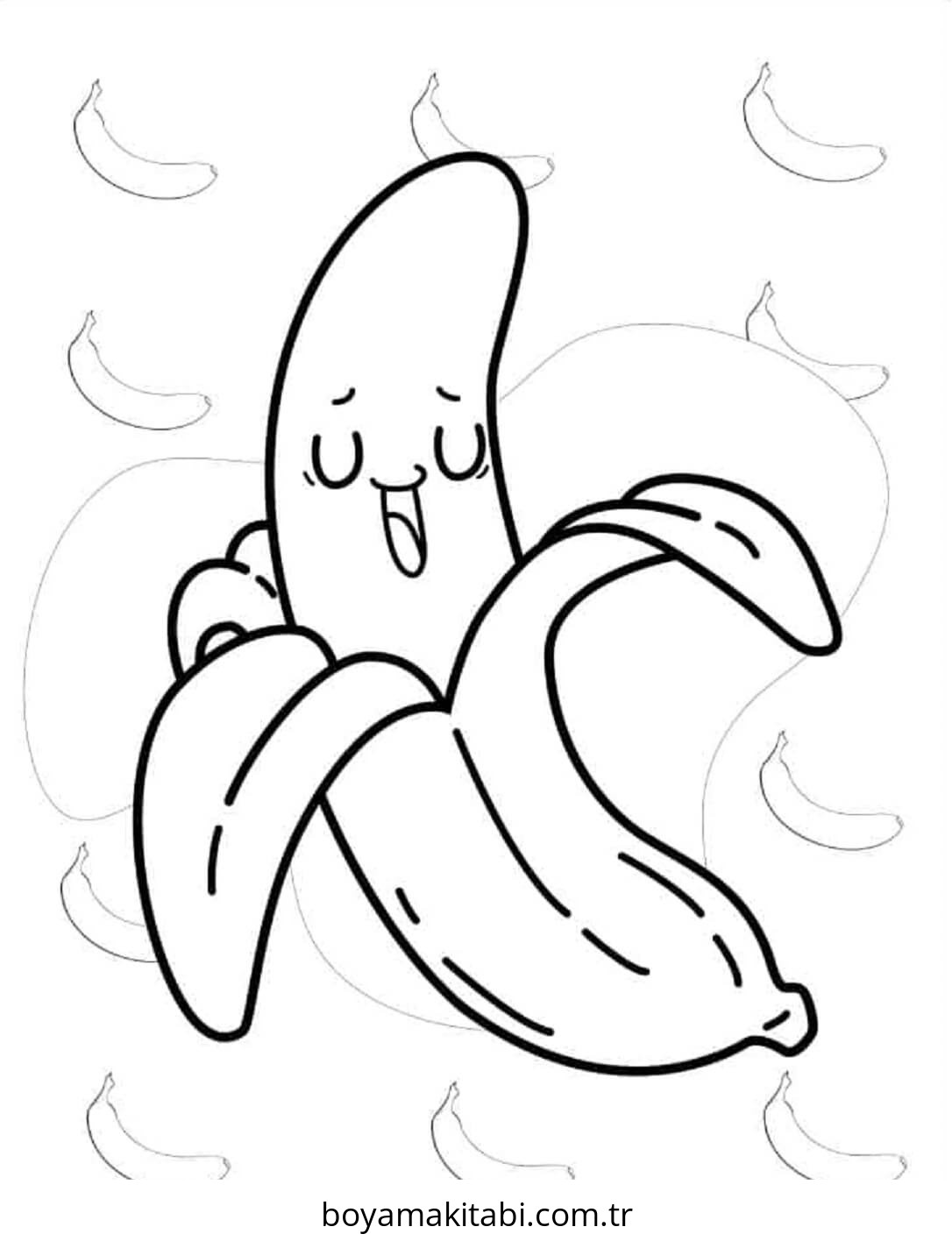 Muz temalı bu boyama sayfası çocuklar için renkli çizimler ve okul öncesi bir etkinlik sunar. Ücretsiz olarak indirip yazdırabilir, evde keyifli bir boyama zamanı oluşturabilirsiniz.
