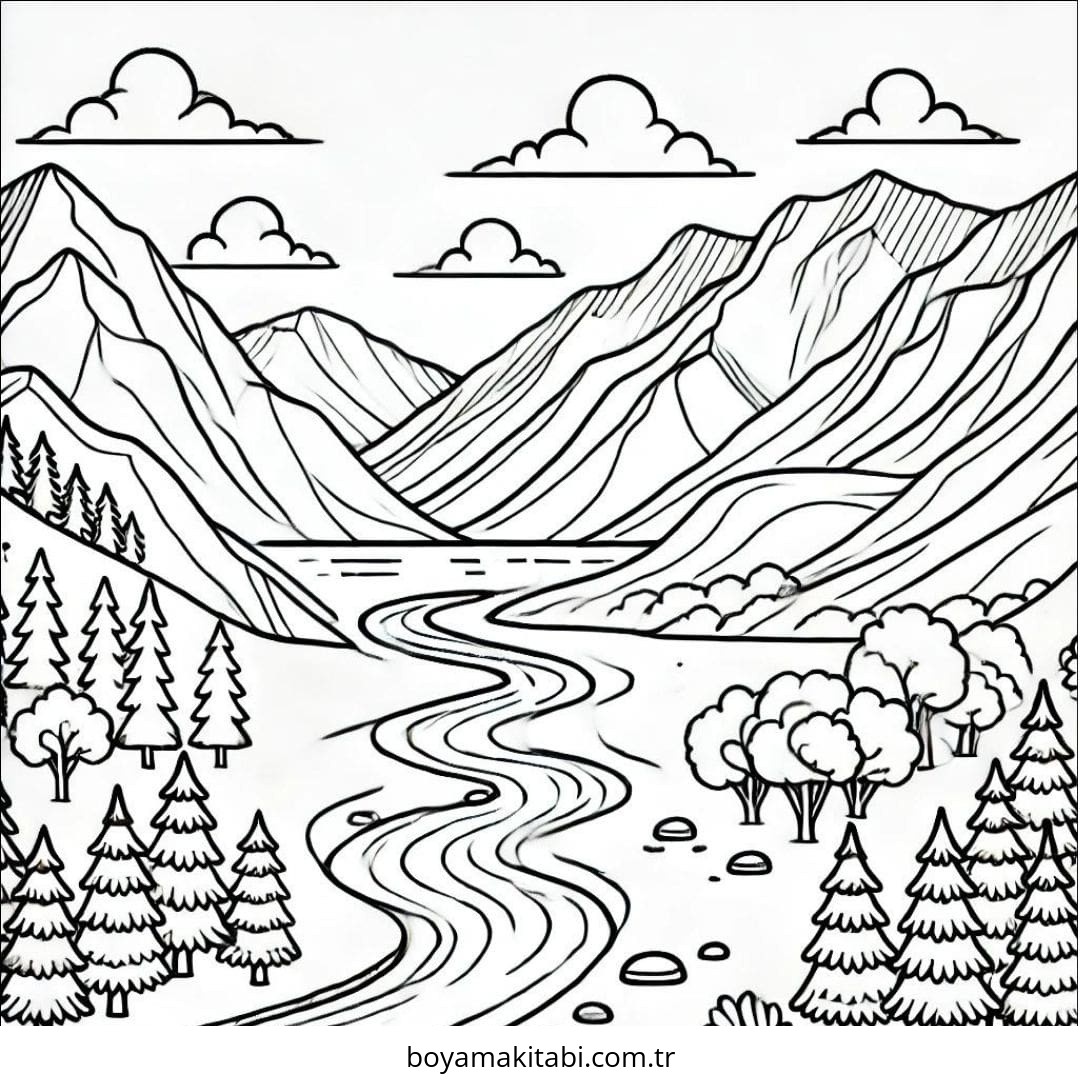 Nehir temalı bu boyama sayfası çocuklar için çocuk aktivitesi ve PDF indir bir etkinlik sunar. Ücretsiz olarak indirip yazdırabilir, evde keyifli bir boyama zamanı oluşturabilirsiniz.
