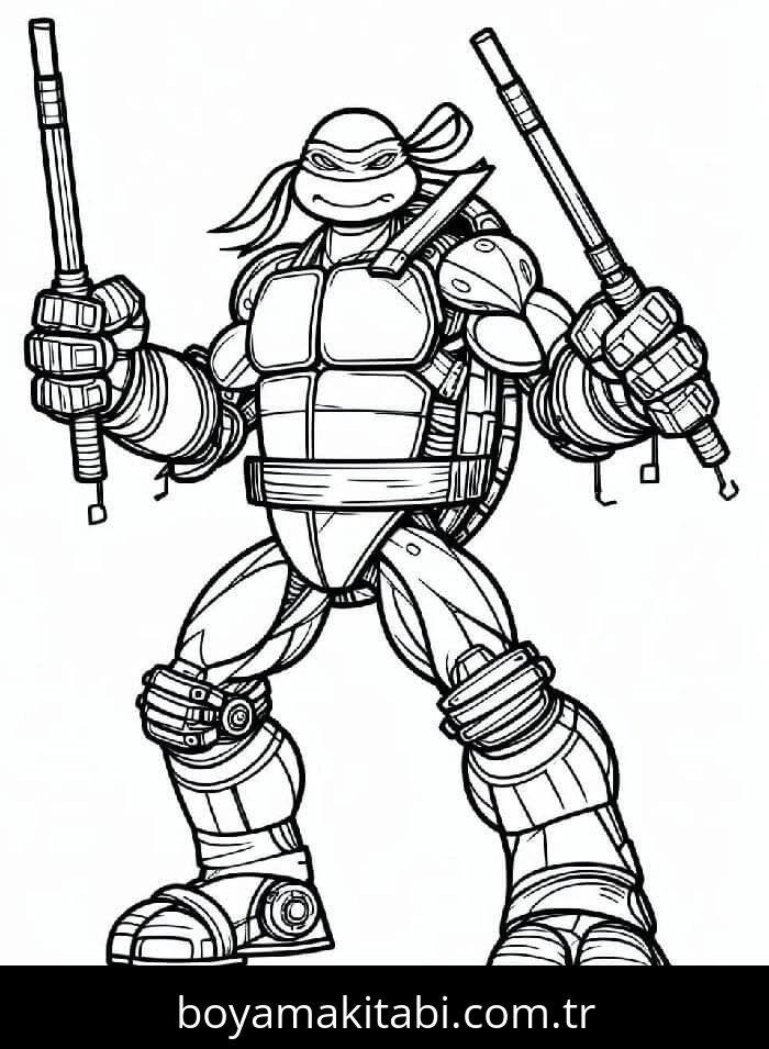 Ninja Kaplumbağalar temalı bu boyama sayfası çocuklar için PDF indir ve sevimli karakter bir etkinlik sunar. Ücretsiz olarak indirip yazdırabilir, evde keyifli bir boyama zamanı oluşturabilirsiniz.