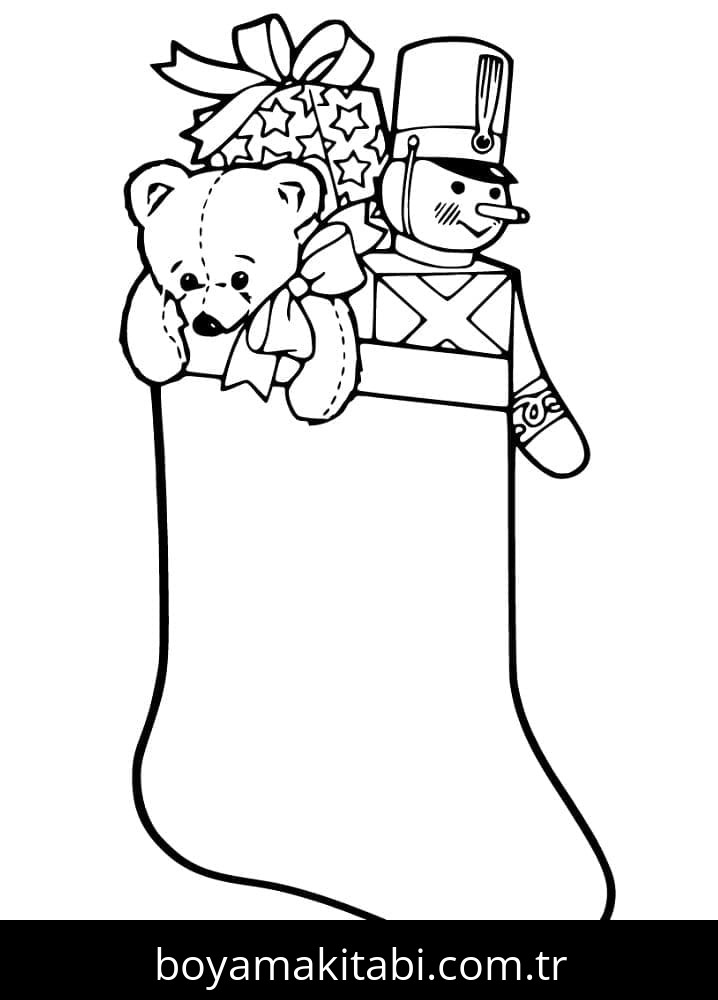 Noel Çorabı temalı bu boyama sayfası çocuklar için sanatsal çalışma ve çocuklar için bir etkinlik sunar. Ücretsiz olarak indirip yazdırabilir, evde keyifli bir boyama zamanı oluşturabilirsiniz.
