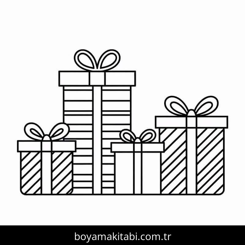 Noel Hediyeleri temalı bu boyama sayfası çocuklar için sanatsal çalışma ve çocuklar için bir etkinlik sunar. Ücretsiz olarak indirip yazdırabilir, evde keyifli bir boyama zamanı oluşturabilirsiniz.