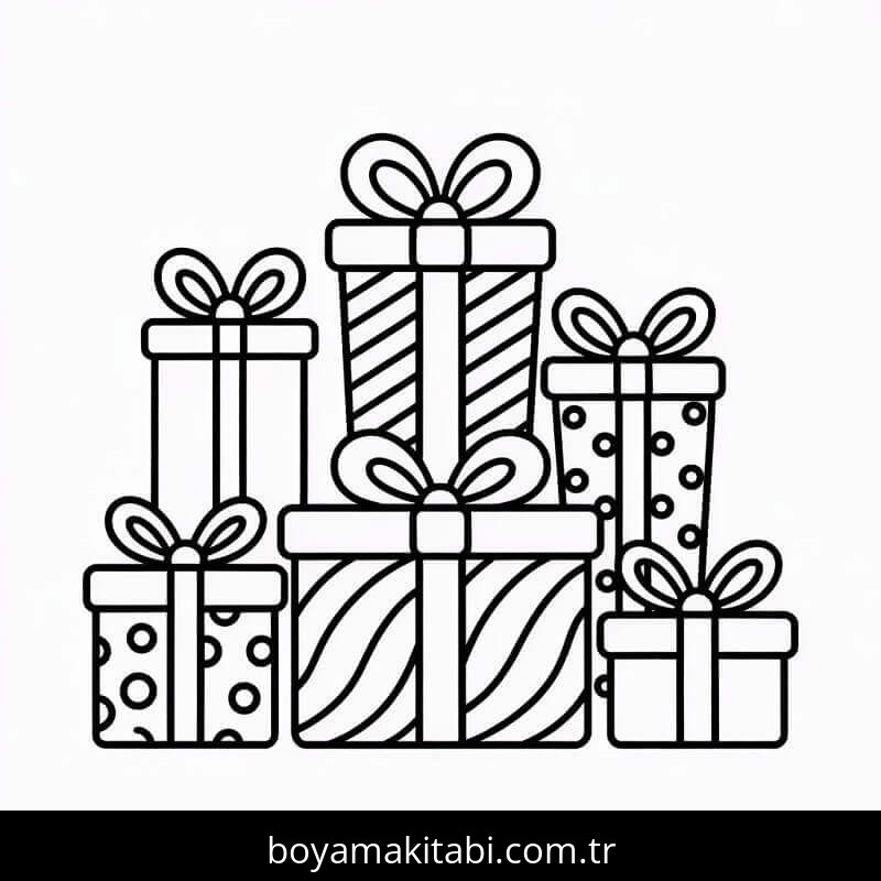Noel Hediyeleri temalı bu boyama sayfası çocuklar için el becerilerini geliştirir ve boyama çalışması bir etkinlik sunar. Ücretsiz olarak indirip yazdırabilir, evde keyifli bir boyama zamanı oluşturabilirsiniz.