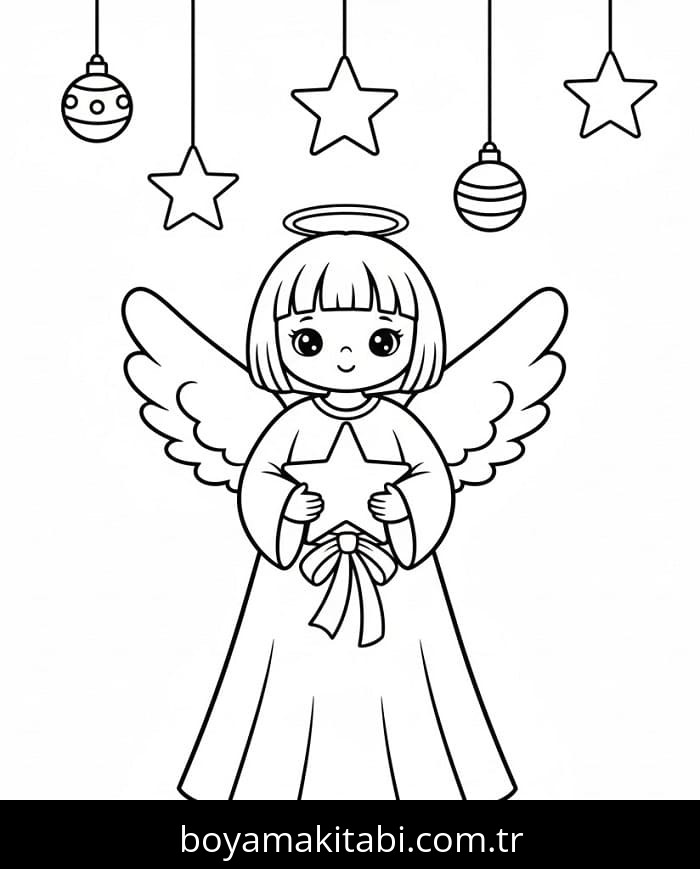 Noel Meleği temalı bu boyama sayfası çocuklar için el becerilerini geliştirir ve boyama çalışması bir etkinlik sunar. Ücretsiz olarak indirip yazdırabilir, evde keyifli bir boyama zamanı oluşturabilirsiniz.