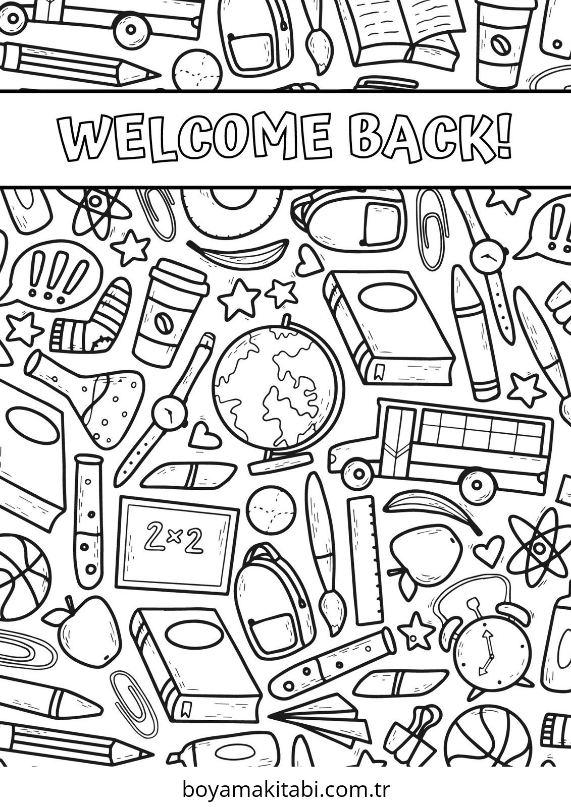 Okula Dönüş temalı bu boyama sayfası çocuklar için sanatsal çalışma ve çocuklar için bir etkinlik sunar. Ücretsiz olarak indirip yazdırabilir, evde keyifli bir boyama zamanı oluşturabilirsiniz.