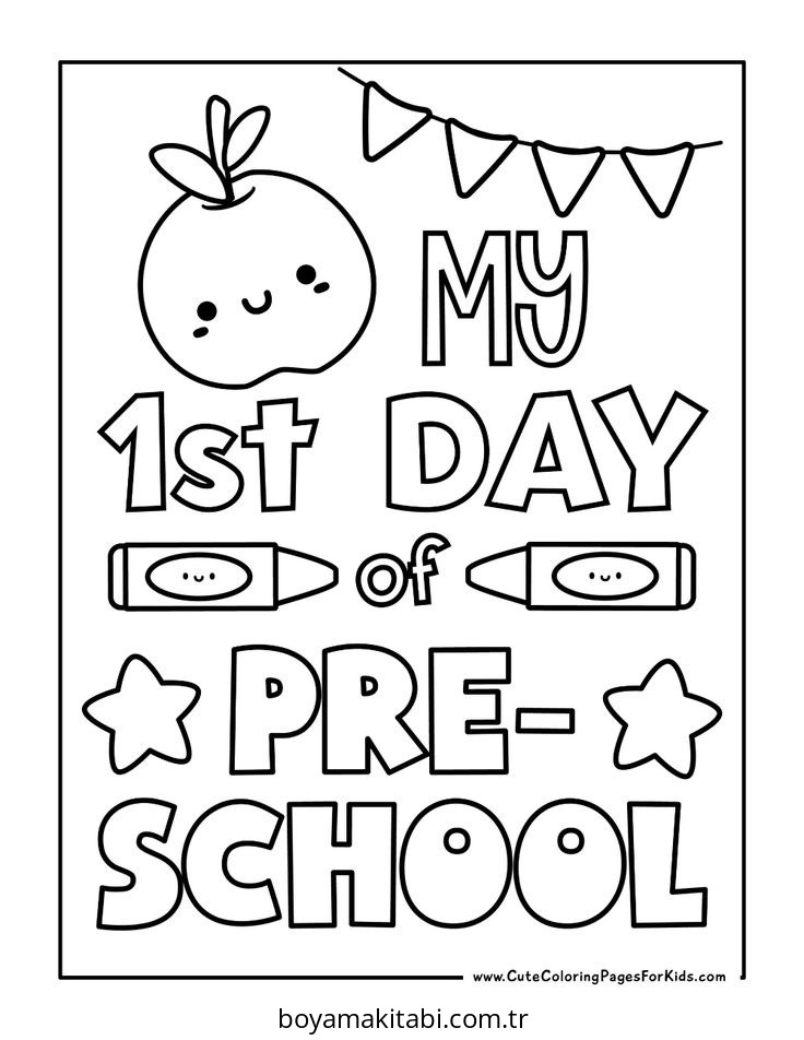 Okula Dönüş temalı bu boyama sayfası çocuklar için keyifli zaman ve renkli çizimler bir etkinlik sunar. Ücretsiz olarak indirip yazdırabilir, evde keyifli bir boyama zamanı oluşturabilirsiniz.