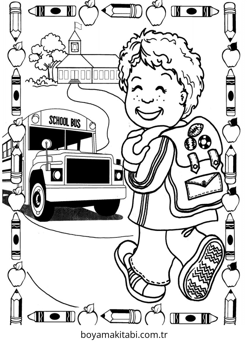 Okula Dönüş temalı bu boyama sayfası çocuklar için PDF indir ve sevimli karakter bir etkinlik sunar. Ücretsiz olarak indirip yazdırabilir, evde keyifli bir boyama zamanı oluşturabilirsiniz.