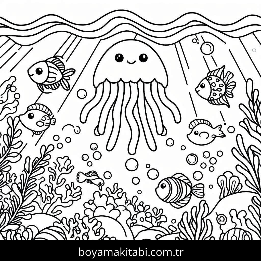 Okyanus temalı bu boyama sayfası çocuklar için eğitici aktivite ve yaratıcılık bir etkinlik sunar. Ücretsiz olarak indirip yazdırabilir, evde keyifli bir boyama zamanı oluşturabilirsiniz.